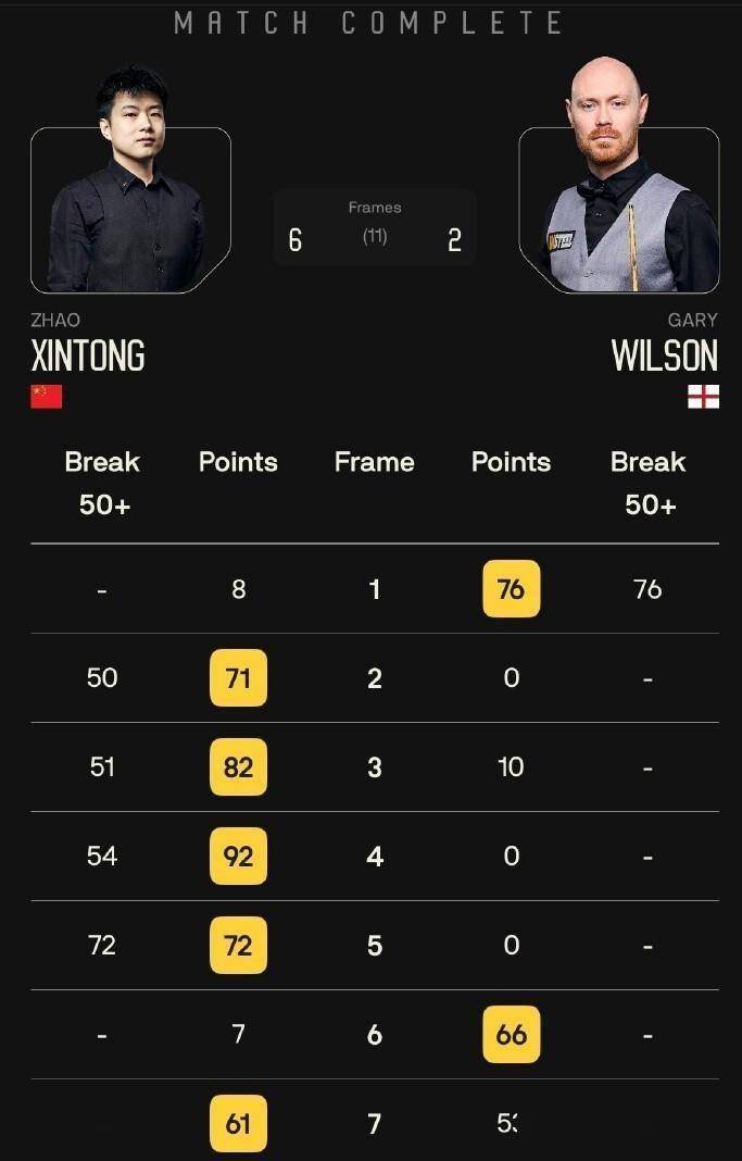 若是说前两场胜利还带着“爆冷”的标签,那么赵心童的晋级则显得顺理成章。 做为赛会二号种子,方才加冕世锦赛冠军的他,面临“出租车司机”加里·威尔逊,从开局就占领了压服性劣势。 长台进攻自始自终地犀利,围球走位照旧行云流水。 虽然两头也有过一两次不需要的失误,但全体节拍牢牢握正在赵心童手中。又一个6比2,比分牌仿佛被设置了复制粘贴。赵心童正在赛后对着镜头浅笑,他说本人第一次正在亚历山大宫赢球,感受棒极了。 他大概没明说,但所有人都晓得,那座大师赛杯,是成绩他“大满贯”的最初一块拼图。