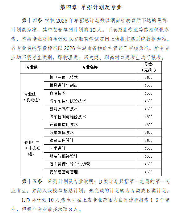 本次单招实行专业组意愿模式,考生填报意愿时,需选择一个专业组中的1-6个专业,并确定能否从命同组内专业调剂,比拟往年,无效降低考生落榜风险。招生专业分为两大专业组,笼盖13个抢手专业,兼顾保守劣势取新兴范畴:专业组一(机械组)包含机电一体化手艺、模具设想取制制、数控手艺、汽车制制取试验手艺、新能源汽车手艺、汽车检测取维修手艺6个专业,精准对接智能制制、汽车财产成长需求;专业组二(非机械组)包含计较机使用手艺、数字手艺、建建室内设想、艺术设想、服拆取服饰设想、酒店办理取数字化运营、药品运营取办理7个专业,涵盖消息手艺、文化创意、现代办事等多个抢手范畴。